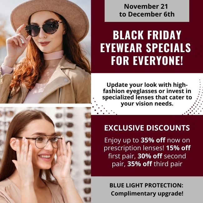 Eye exams are crucial for both your eye health and overall well-being. Our comprehensive exams assess more than the clarity of your vision. We also screen for early signs of eye disease and eye conditions such as dry eye, glaucoma, myopia, and more.